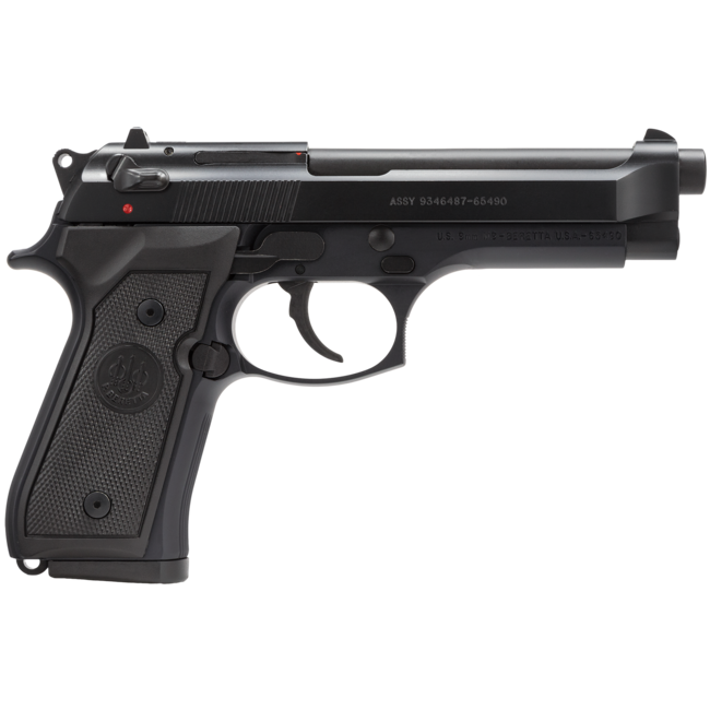 The M9 offers a variety of tactical features that make it equally safe, easy to use and dependable in the holster of military personnel as well as for home or personal defense. Its reversible magazine release enables the use of either hand for tactical magazine changes, while its ambidextrous safety-decocker makes the pistol flexible for right- or left-handed persons or for shooters trying out different gripping or shooting styles. Its Bruniton finish with military-style markings is highly resistant to sweat and corrosion, and after shooting, a tool-free disassembly latch makes it simple and quick to take the pistol apart for cleaning. These and countless other useful features make the M9 the choice of the US military, as well as individuals wanting the absolute best for sport or self-protection.
