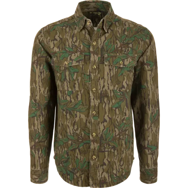 Expertly crafted with heavy-duty 8.3oz 100% cotton twill material, the Throwback 80 Button Down Field Shirt is built to last. With durable triple-needle stitching seams, this shirt is designed for both style and functionality. Reinforced forearms and elbows provide extra strength and durability for any outdoor adventure.