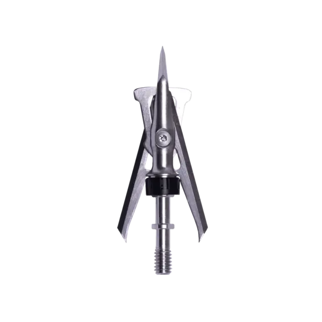 Rage Customers asked and we delivered. The Hypo 2 is an improved Shock Collar version of our original Hypodermic Series of Slip Cam Broadheads, featuring a triangular keyed shock collar that only allows the Shock Collar to be installed in the correct orientation to eliminate improper installation. Once in place the tried and true Shock Collar blade locking system holds the 2 razor sharp, .035″ stainless steel blades closed until impact. Upon impact, the blades instantly deploy to a 2+ inch cutting diameter, administering the gaping wounds that bowhunters have come to expect from the field-proven Rage Hypodermic series. The keyed Shock Collar also allows for all 6 pedals to be used; simply remove the collar, spin 120 degrees and reinstall. The Hypo 2 features an even sharper Hypodermic hybrid tip and more swept blade angle for increased penetration. In flight, that streamlined design makes for superior field-tip accuracy. The two .035” thick blades deploy on impact, sliding into a swept-back blade angle while the monstrous 2” cutting diameter delivers an extra wide “Slap Cut” entry hole for gruesome blood trails and brief tracking jobs. Available in 100 Grain and 125 Grain.