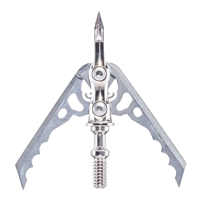 The revolutionary Hypodermic NC +P utilizes cutting-edge finger-like tabs on the blades’ Slip Cam pivot point to “anchor” them in place while in the closed position, eliminating the need for a SHOCK COLLAR, dental band or O-ring, while still providing reliable blade retention. Upon impact, the blades instantly deploy to a 1 3/4-inch cutting diameter, administering the gaping wounds that bowhunters have come to expect from the field-proven Rage Hypodermic series. The Hypodermic NC +P features the lethal Hypodermic hybrid tip with an even narrower profile and needle-like ferrule and swept-back blade design for deeper penetration. In flight, that streamlined design makes for superior field-tip accuracy. The two .035” thick blades deploy on impact, sliding into a swept-back blade angle while the 1.75” cutting diameter delivers a wide entry hole for gruesome blood trails and brief tracking jobs.